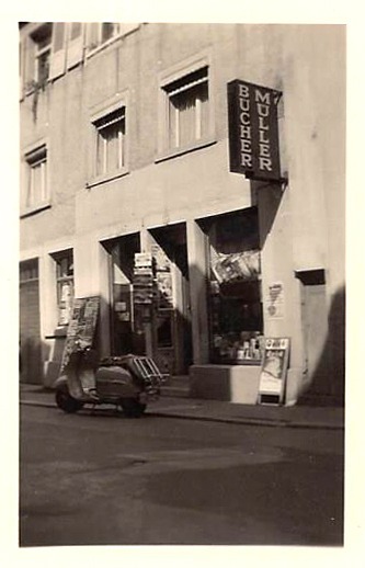 In diesem Haus in Offenburg, in der Gerberstraße Nr. 5., wohnten wir mit unseren Großeltern. Im Erdgeschoss war „Urur-Opas Laden“ – Leih-Bücherei, Geschenkartikel, Schreibwaren, Krimskrams. Morgens stellte Urur-Opa Erich Werbe-Aufsteller für Zeitungen vor den Laden. Weil Opa Erich früher Konditor war, stand er immer sehr früh auf. Gegen 4 Uhr konnten die ersten Kunden, die zur Frühschicht gingen, schon für 5 oder 10 Pfennige die BILD-Zeitung kaufen.