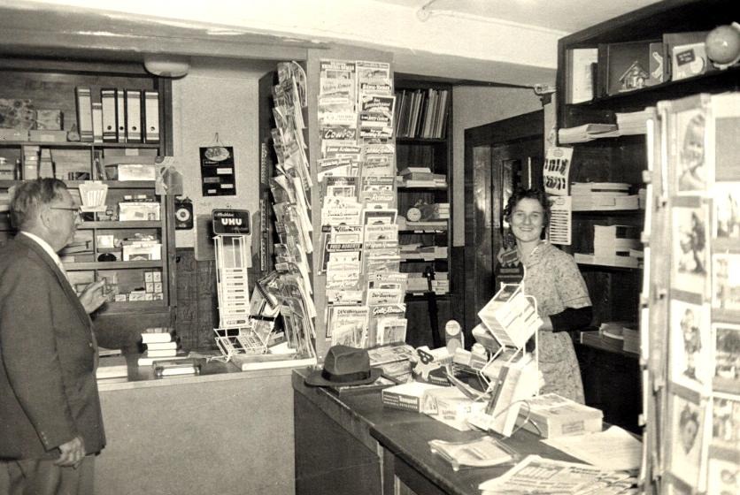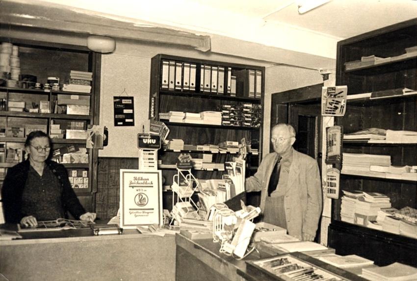 Der Laden war ein Familien-Geschäft. Oma Elisabeth (meine Mutti) arbeitete als Verkäuferin. Opa Erwin (mein Vati) war Fotograf und arbeitete in einem Fotogeschäft. Er entwickelte in der Dunkelkammer Fotos. Wenn er von der Arbeit nach Hause kam half er im Laden. Er übernahm z.B. die Schaufenster-Deko.