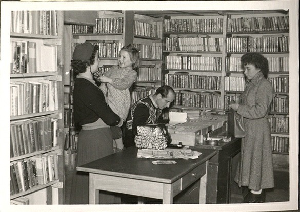 Mein Dienst in der Leihbücherei hatte auch Vorteile. Wenn gerade keine Kunden da waren, konnte ich lesen soviel ich wollte. Ich hatte mein Buch in die Schublade gelegt. Wenn ein Kunde oder eine Kundin kam, schob ich die Schublade zu und grüßte freundlich. Ich zog die Kundenkarte aus dem Karteikasten und trug dort die Bücher ein, die ausgeliehen wurden. So behielten wir einen Überblick. Wenn die Kunden ihre Wahl getroffen hatten, stempelte ich das Datum in das vorgesehene Kästchen ins Buch. Nach 2 oder 4 Wochen mussten die Bücher zurück gegeben werden. Genau weiß ich es nicht mehr. Wer zu spät abgab musste Strafe zahlen, 50 Pfennig oder so.